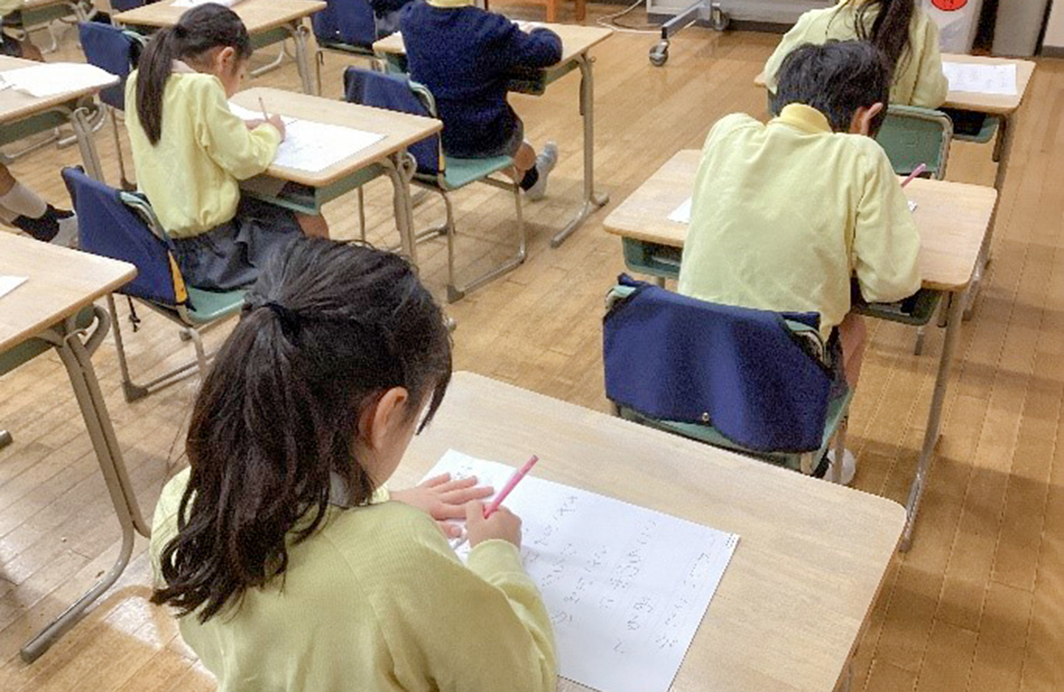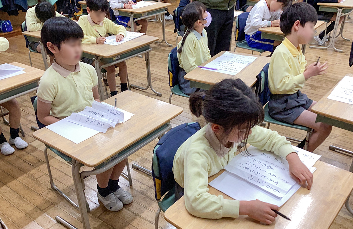 1・2年生は硬筆で視写します。1年生は鉛筆、2年生は書き方ペンを用いて、丁寧に書きあげました。