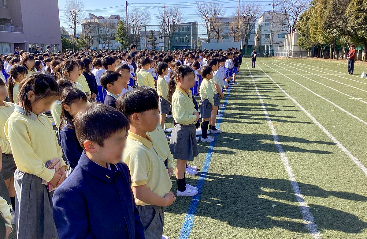 整列して全員の無事を確認した後、校長先生のお話を聞きました。