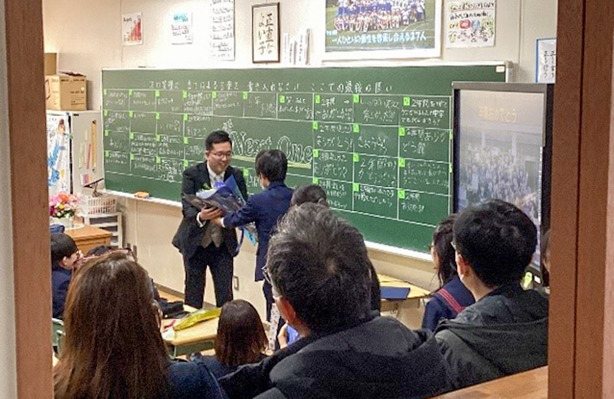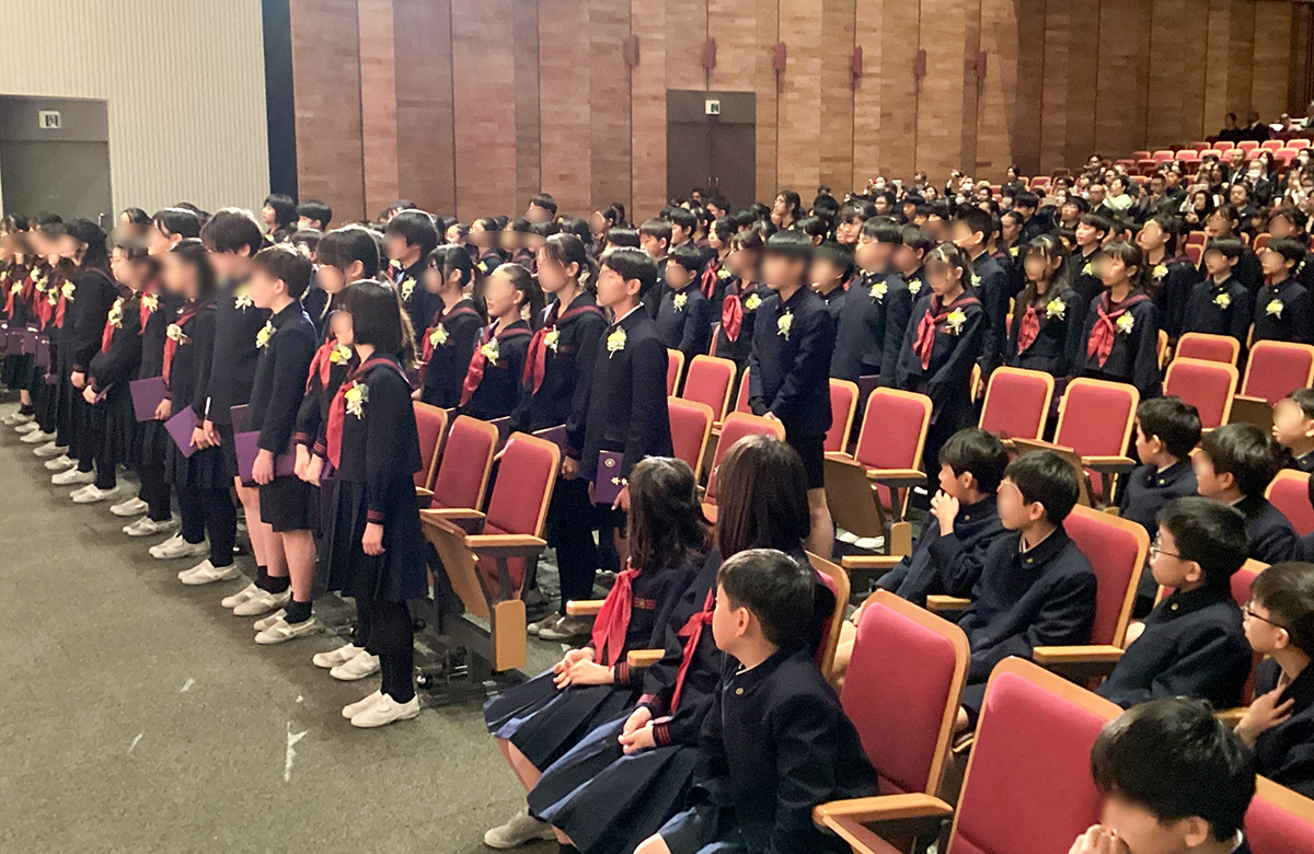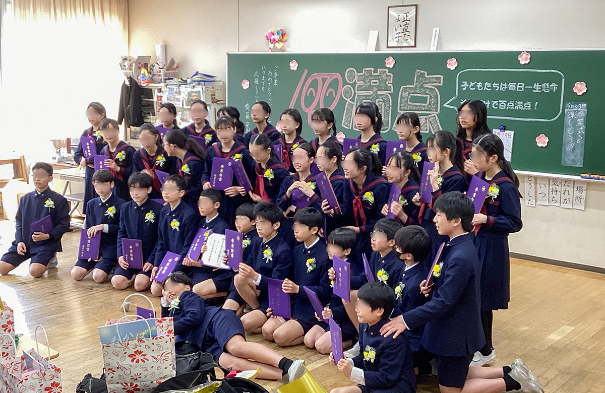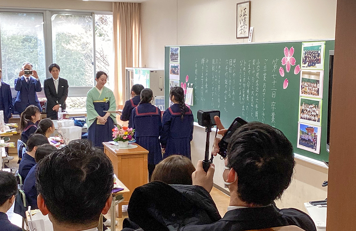 小学校生活最後の凝念をした後、先生方一人ひとりにお礼のお手紙を渡し、大きな拍手で見送られました。