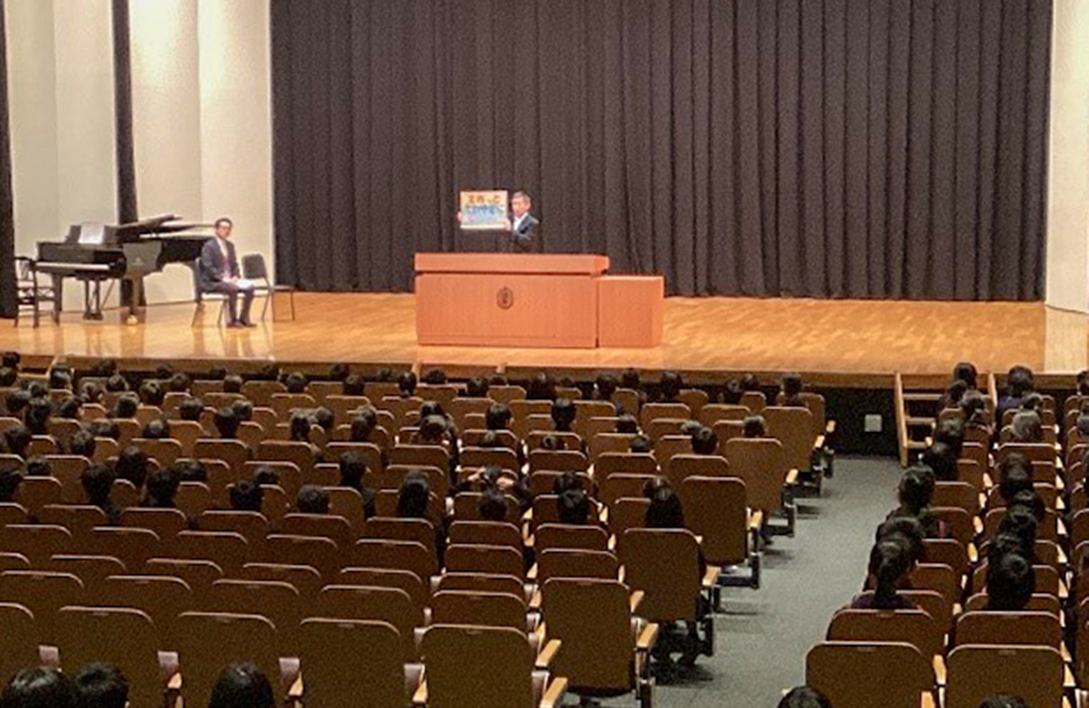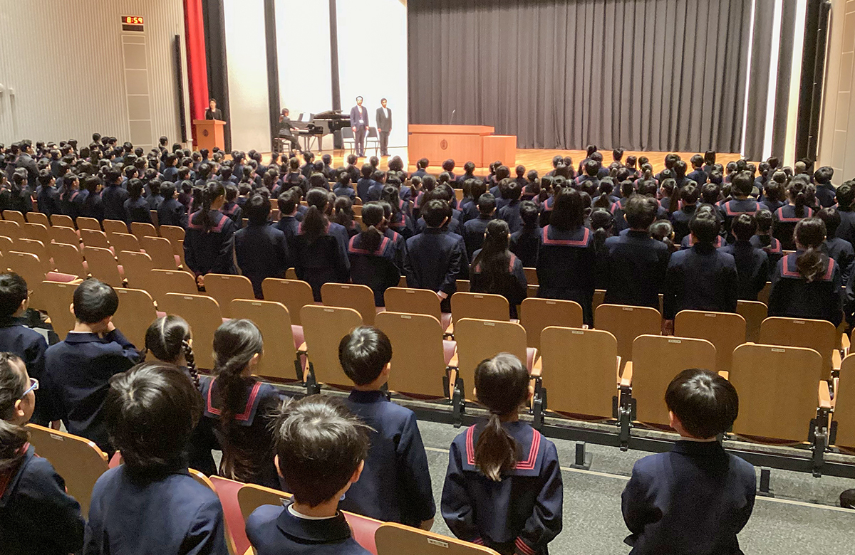 校長先生のお話の後、全員で学苑賛歌を歌いました。