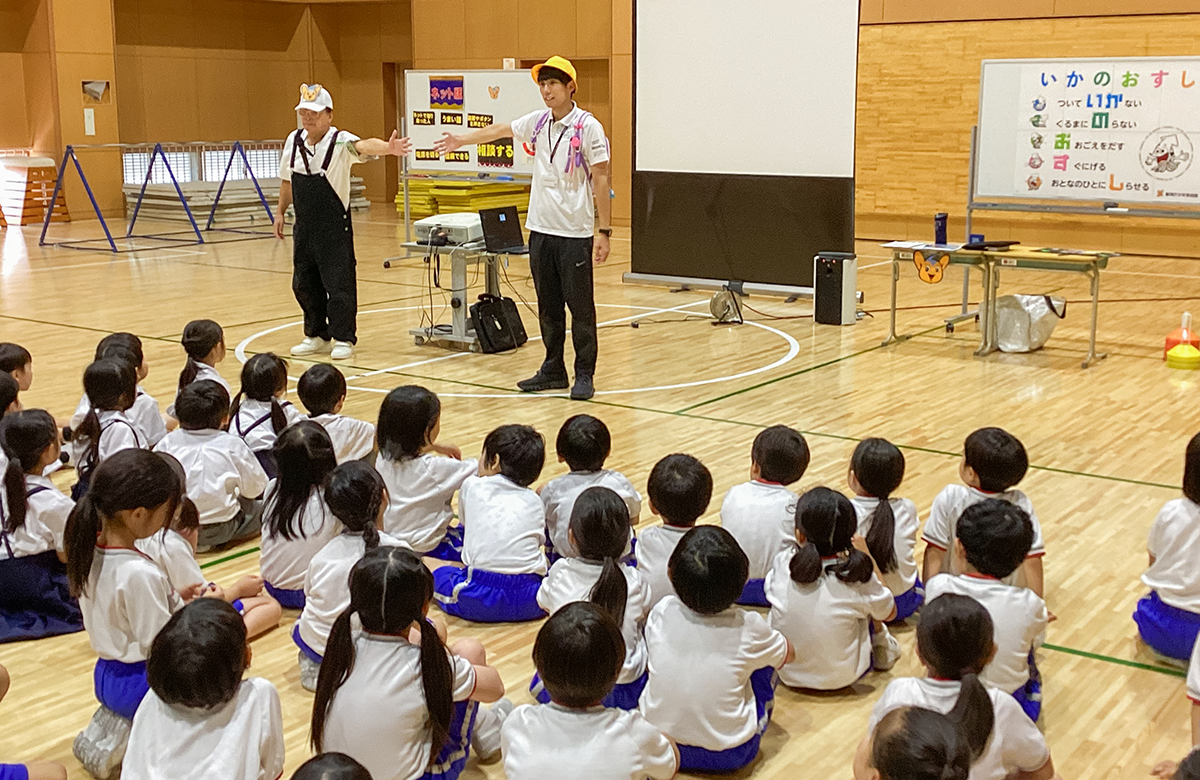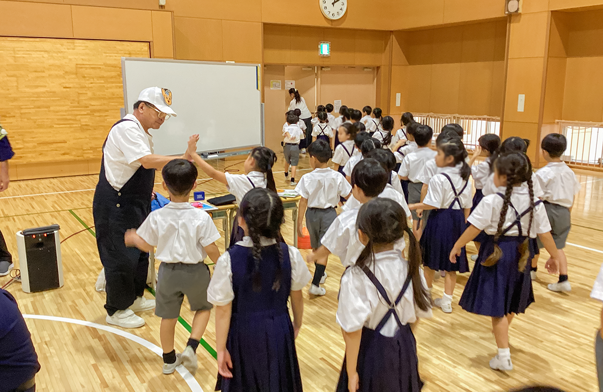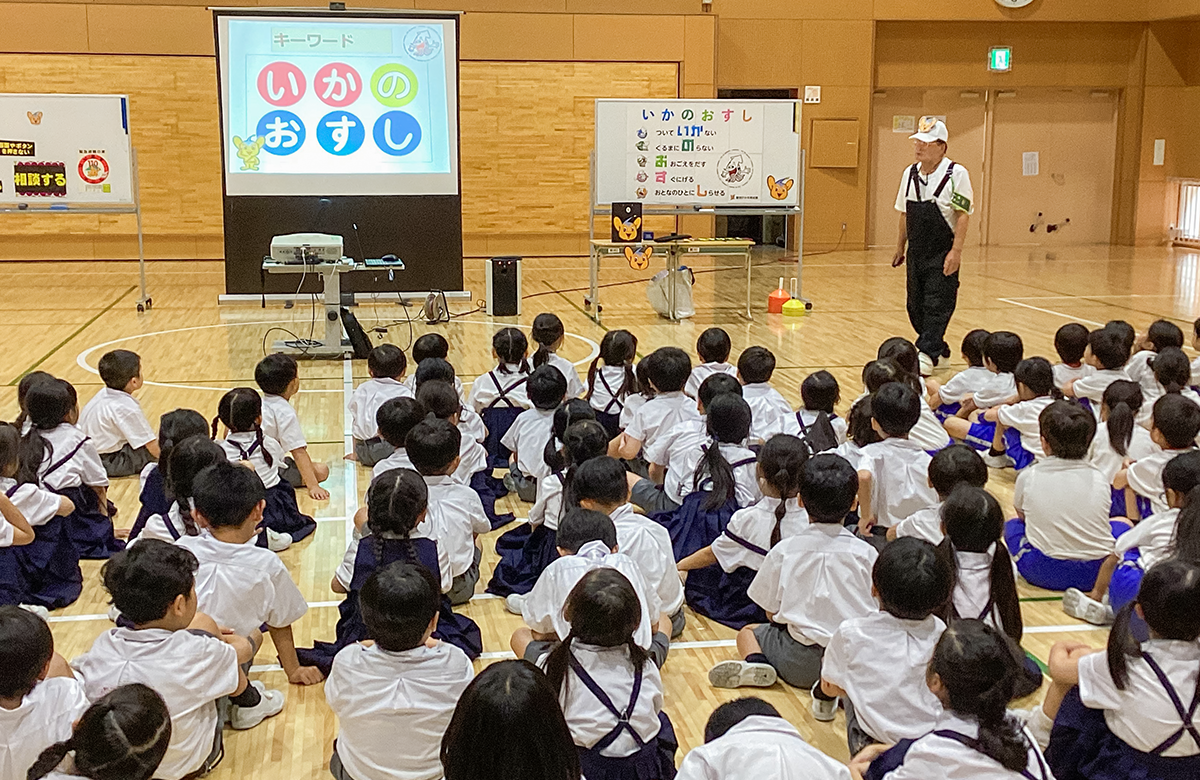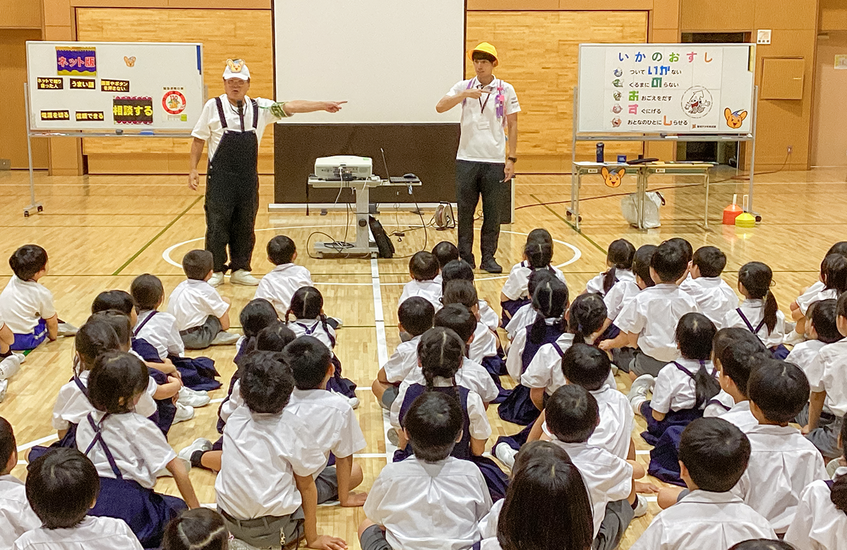 9月19日(金)に、府中警察からスクールサポーターの方にお越しいただき、1〜3 年生を対象にセーフティー教室を行いました。