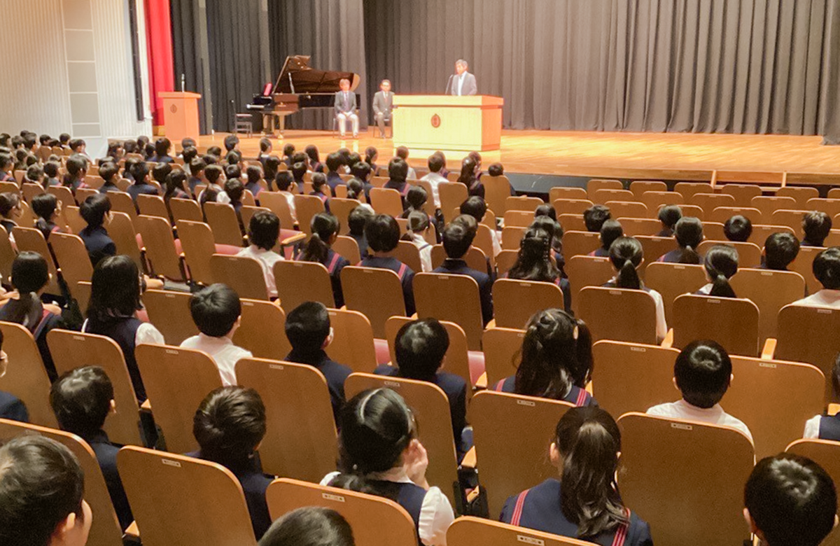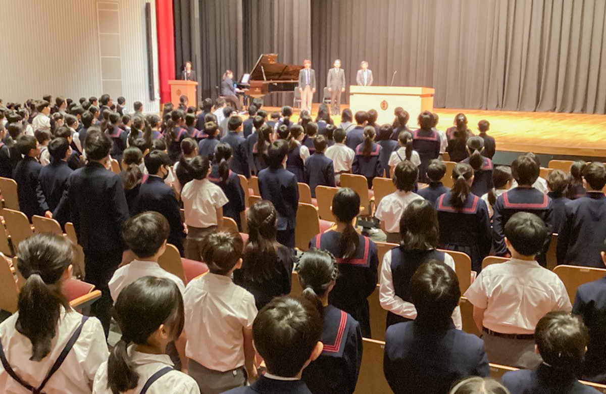 校長先生のお話の後、全校で学苑賛歌を歌いました。