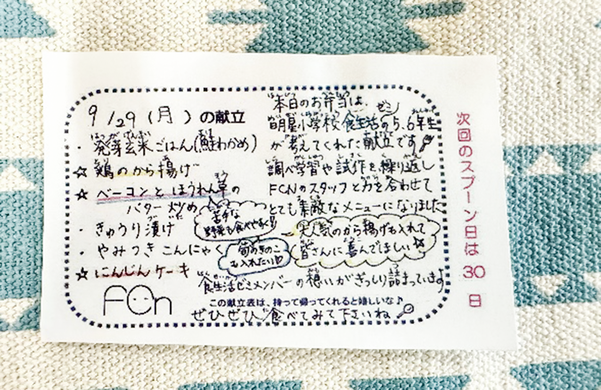 5・6年生4名が所属する「食生活ゼミ」で、約半年にわたり児童が取り組んできたオリジナルお弁当メニューが、本日ついに実現しました。