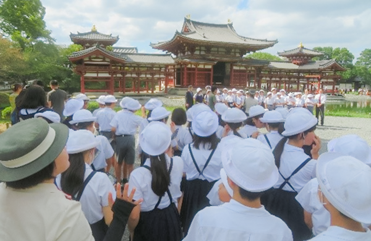 歴史学習でも学んだ平等院の見学では、景色に大きな歓声が上がっていました。