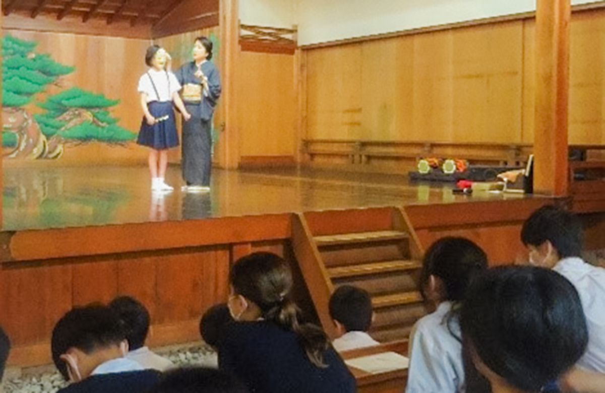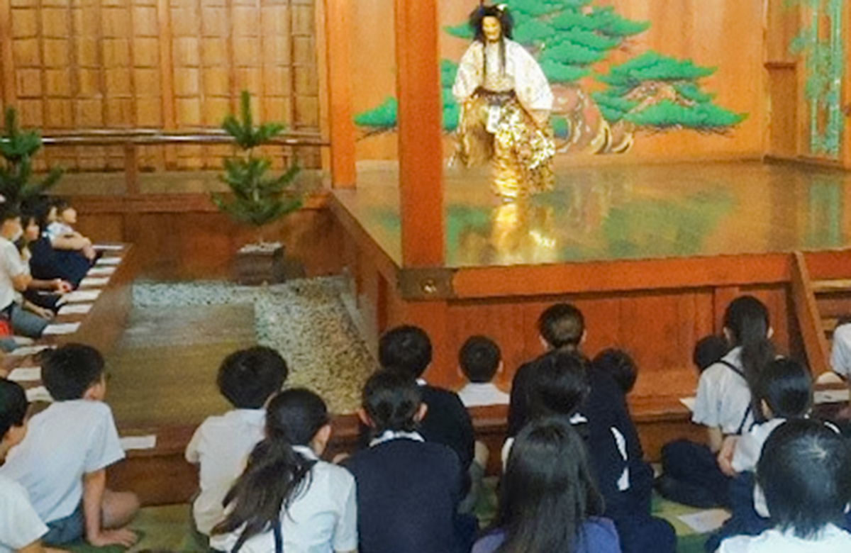 初めて能舞台を見る子がほとんどでしたが、「能」についてわかりやすく説明をしていただき、改めて「能」を身近に感じた貴重な時間でした。