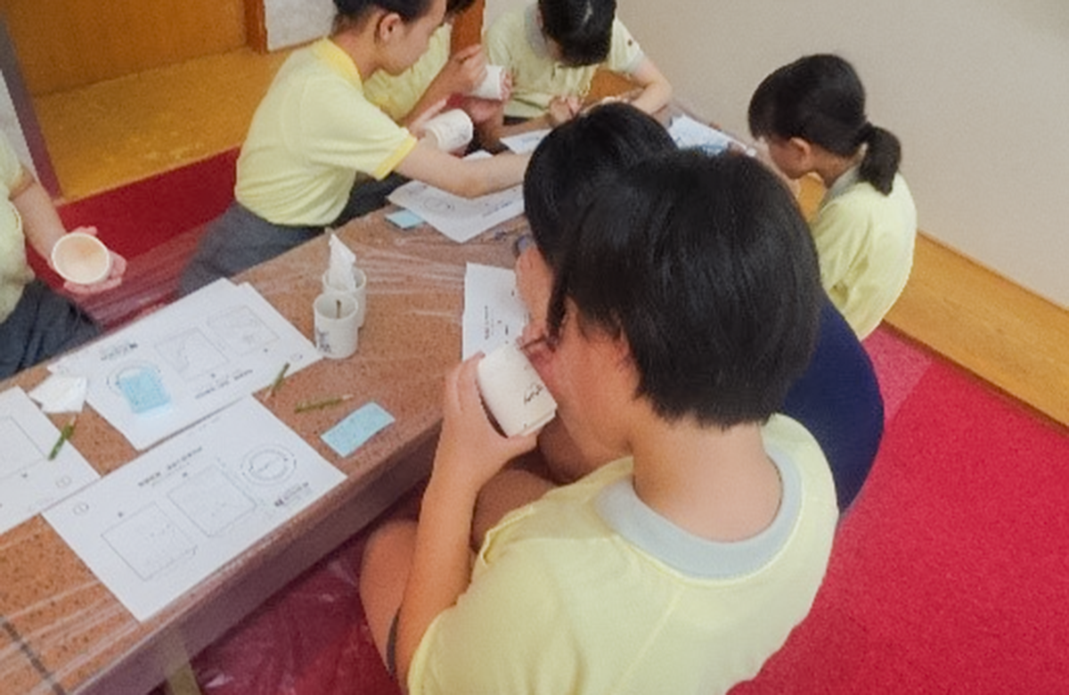 夕食の後は、伝統工芸品の清水焼の絵付け体験を行いました。事前に考えた絵柄を描きました。焼き上がり後の完成が待ち遠しい様子でした。