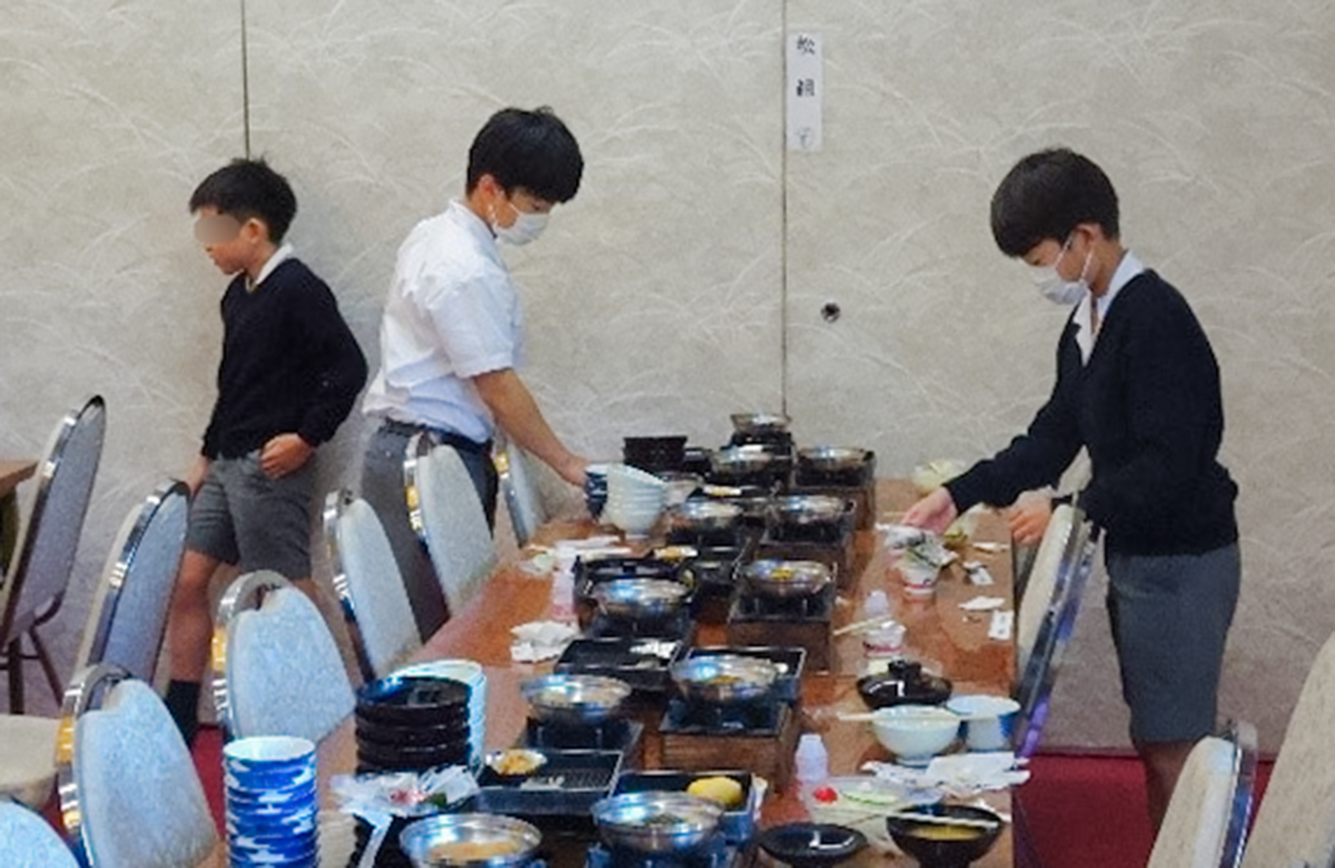 検温を済ませ、全員元気な朝を迎えました。3日目は班別行動の一日です。朝食のかたづけでも自分たちで気づいて行動する姿が増えてきました。