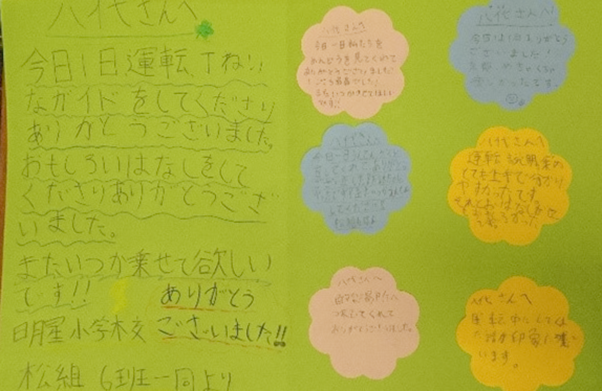 ホテルに戻ってきて、各班でお世話になったタクシーの運転手さんへの手紙を作りました。優しく、楽しく教えてくださった事への感謝の気持ちを込めて作っていました。