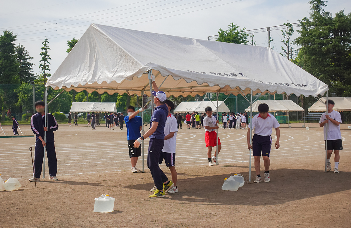 明日の体育祭本番に向けて、高校2年生の生徒たちは準備に取り組んでいました。