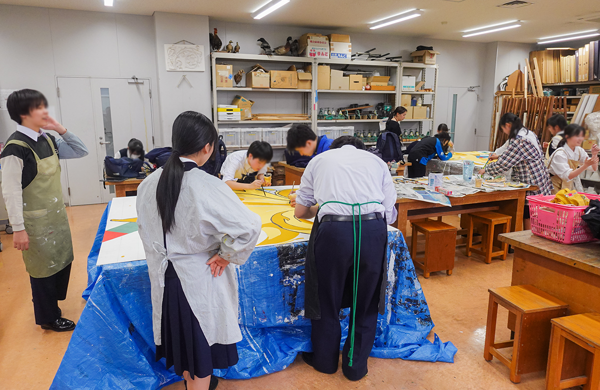 また、美術部の生徒たちは、体育祭のシンボルとなる入退場門の制作に真剣に取り組んでいました。