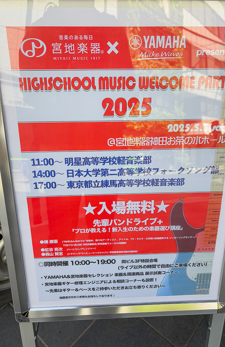 2025年5月3日、軽音楽部は宮地楽器神田お茶の水ホールで開催された、宮地楽器・YAMAHA主催の新歓セミナーに参加しました。