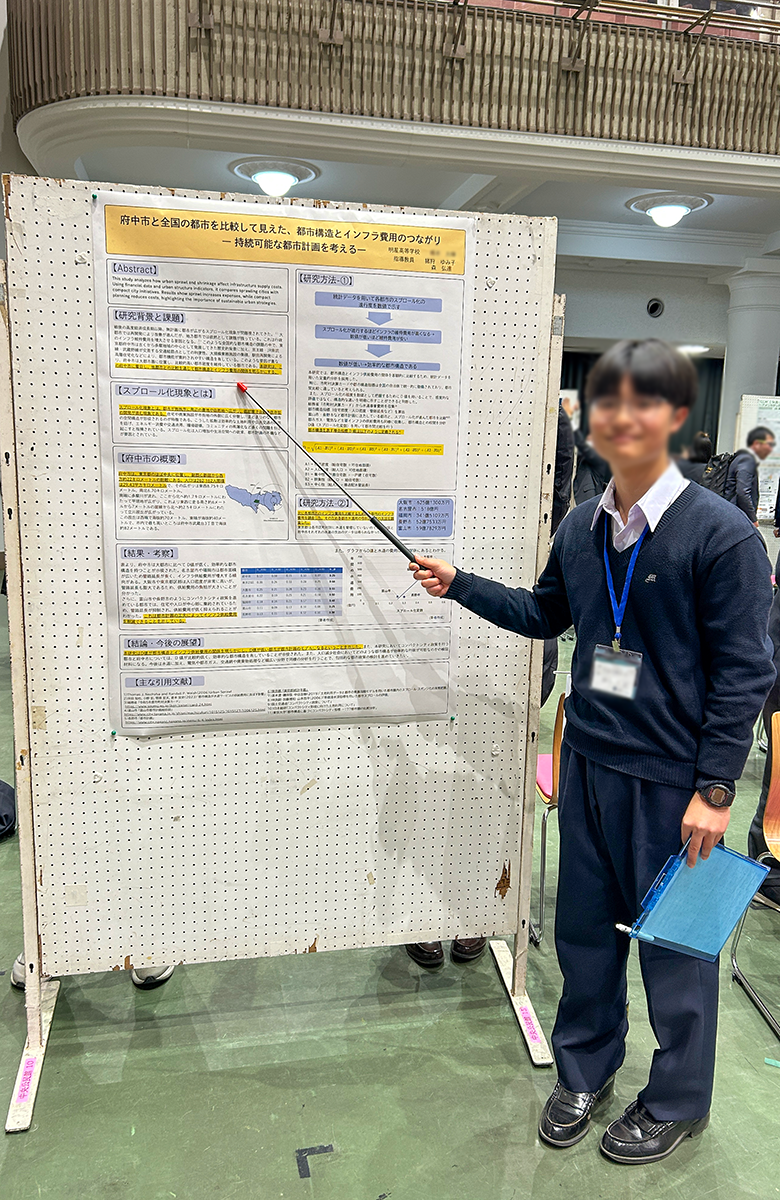 今回は特選クラスで行われている「探究プログラム」の集大成として取り組んでいました。橋本くんはクラス代表の気概を持って、物怖じせずに自身の探究の成果を発表してきました。彼自身は大きな経験と自信を得て、そして、彼を送り出した級友たちも次の目標に向けて新たに動き出す決意を感じました。