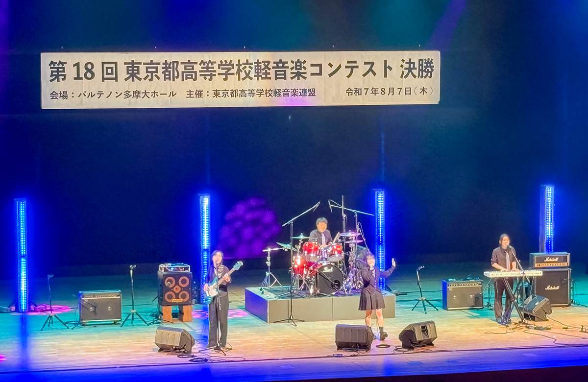 8月7日、明星高校は東京都高等学校軽音楽連盟の主催する「東京都高等学校軽音楽コンテスト」の決勝大会に臨みました。出場したバンドは全員2年生の4人バンド「軟式ゴルフ46」です。