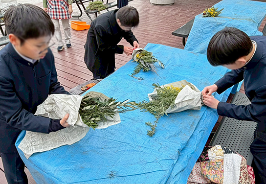 中学一年生 たねダンゴの観察とスワッグ作り