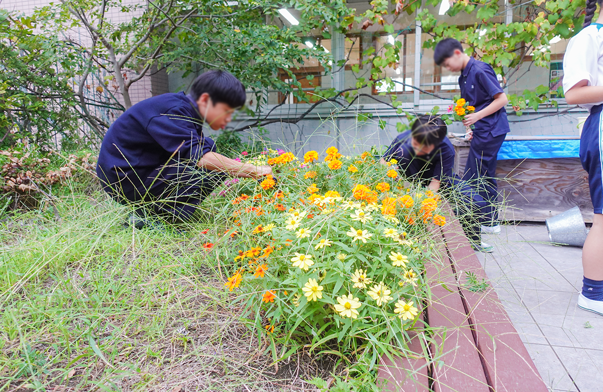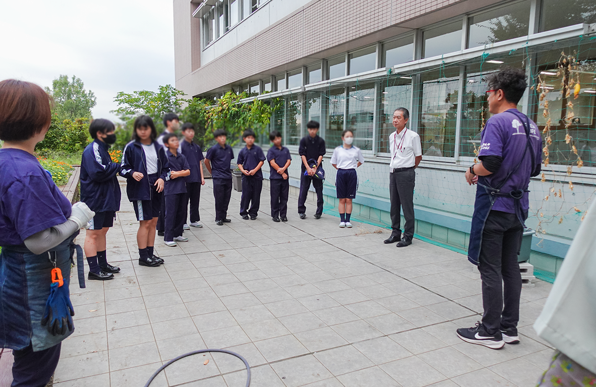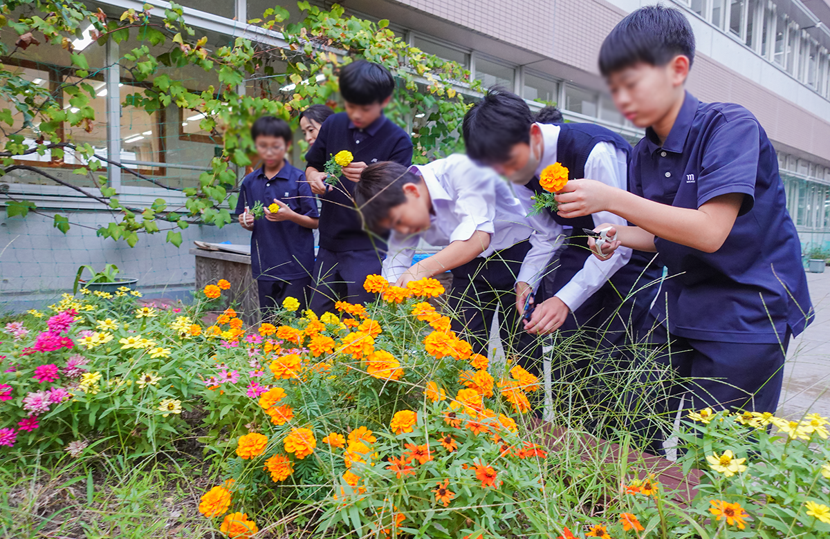 10月10日(金)、本校の空中庭園にて中学1年生を対象に講師の先生方をお招きし、「花と緑の探究プログラム」を実施しました。