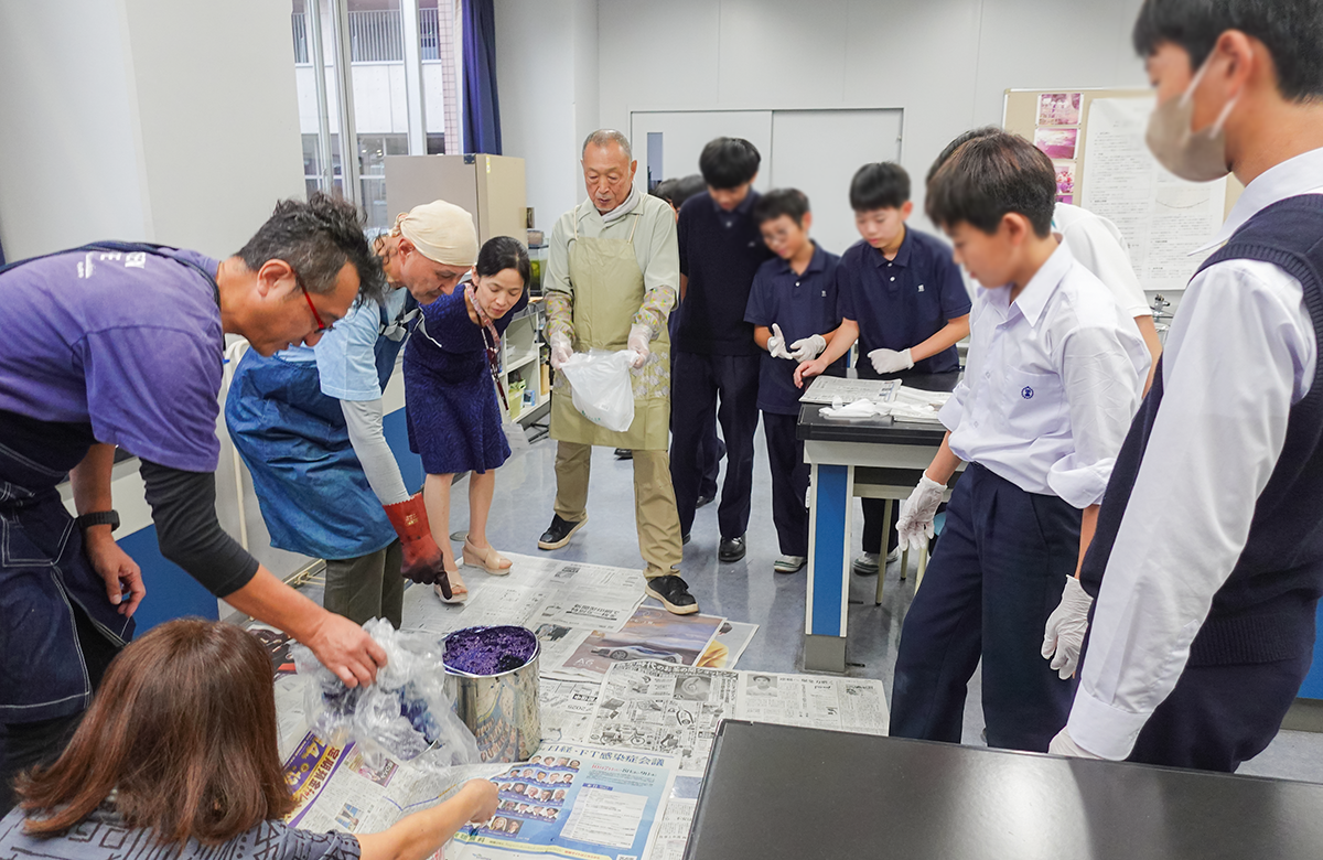 生徒たちは藍染体験を通して、自然の藍が織りなす繊細で美しい色合いとその魅力に触れることができました。