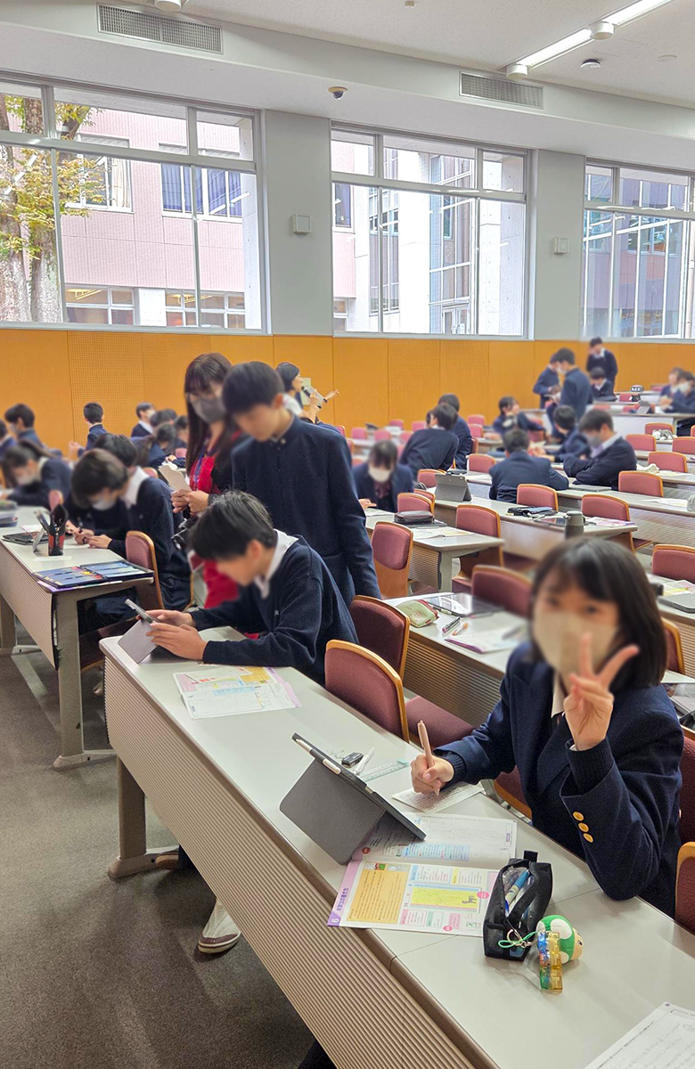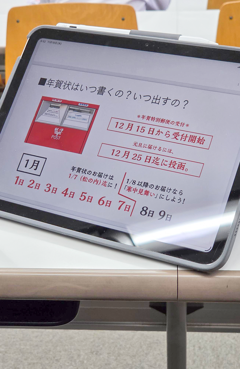 11月19日(水)本校視聴覚ホールにて、日本郵便株式会社の協力のもと手紙の書き方体験授業を実施いたしました。普段あまり書かなくなった手紙を使って、自分の気持ちを伝えることの大切さや、年賀状の歴史や書き方を丁寧にご説明いただきました。生徒達も保護者、友人宛に手紙にすることで、普段伝えられない想いを手紙にしたためておりました。日本郵便株式会社の皆様、JPPFC(JPペンフレンドクラブ)の皆様ご協力頂きありがとうございます。 一覧に戻る