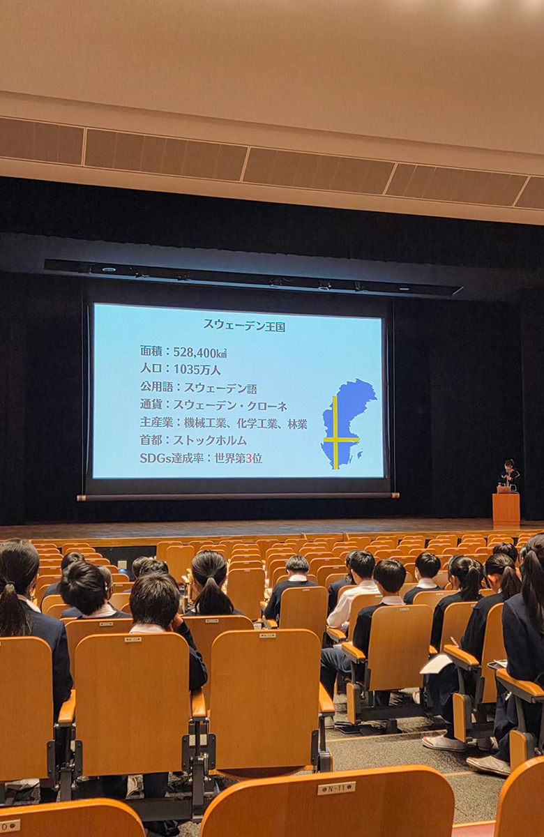 ミライクリエの菅原様をお招きして、総合学習として持続可能な社会について講演いただきました。SDGs達成ランキング世界2位のスウェーデンを例に、再生可能エネルギーを中心とした街づくりについて理解を深めました。 一覧に戻る