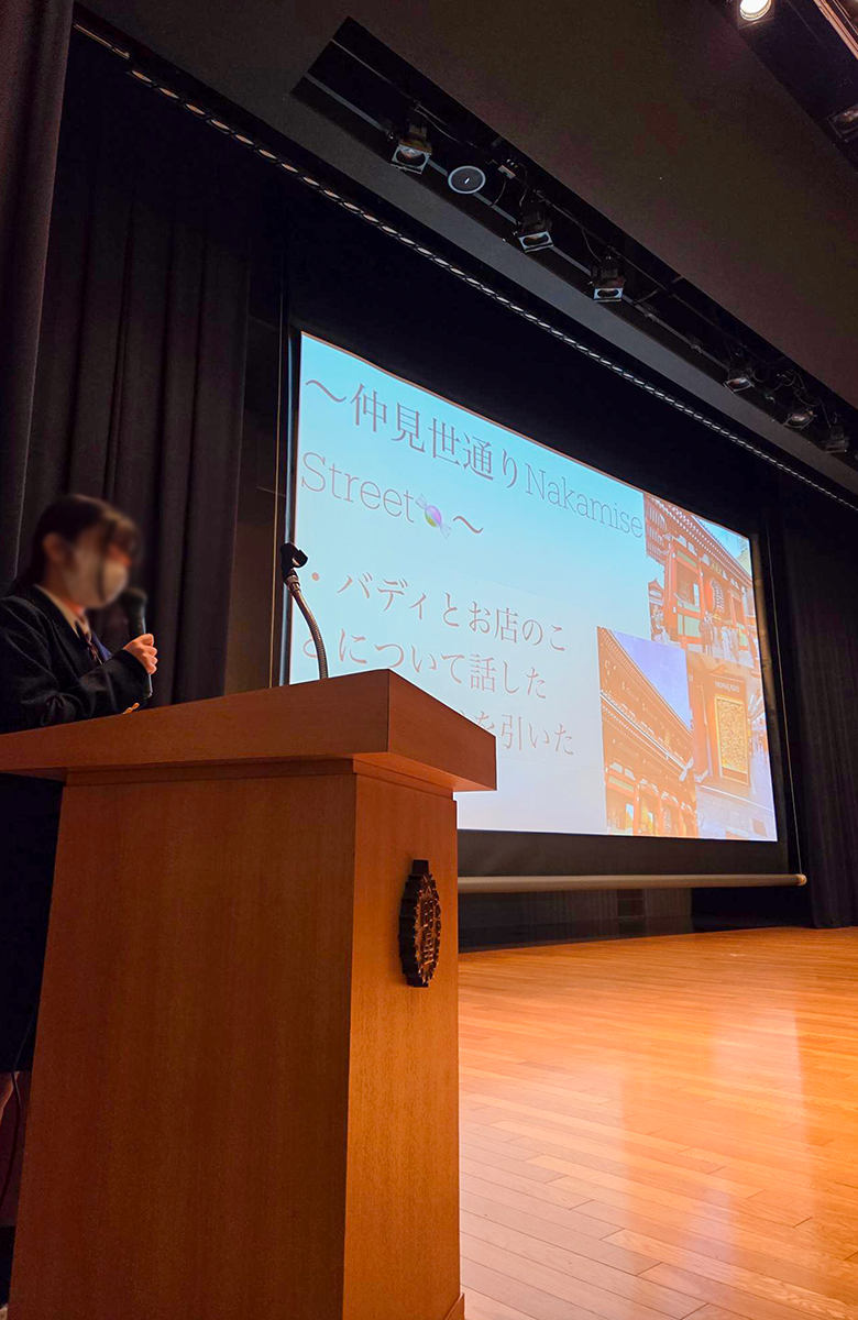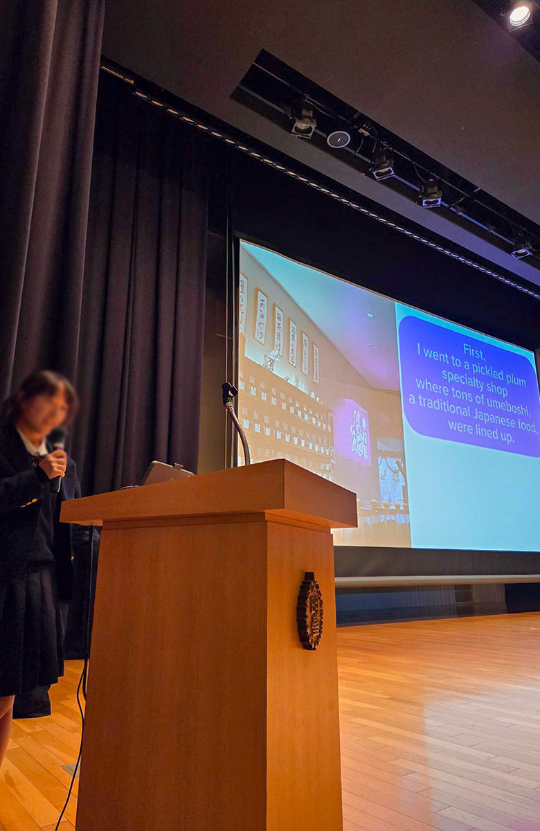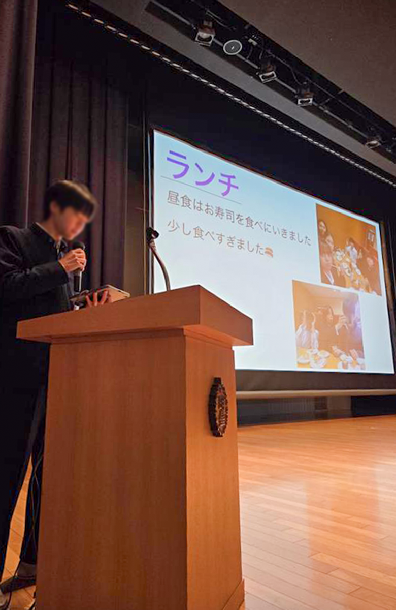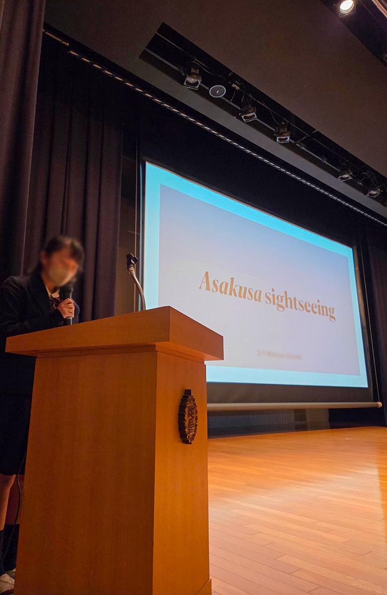 先日実施したEnglish camp浅草のスライド発表の決勝を、12月3日(水)本校講堂にて行いました。英語を使ってスライド発表をする生徒もおり、非常に盛り上がりました。英語を使って、海外の留学生と会話ができたことなどが大きな自信となったようです。 一覧に戻る