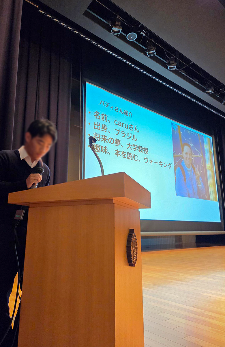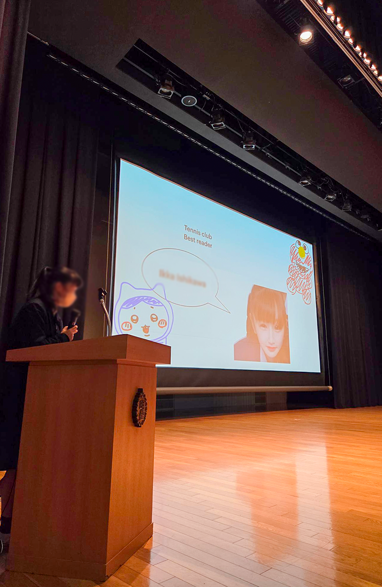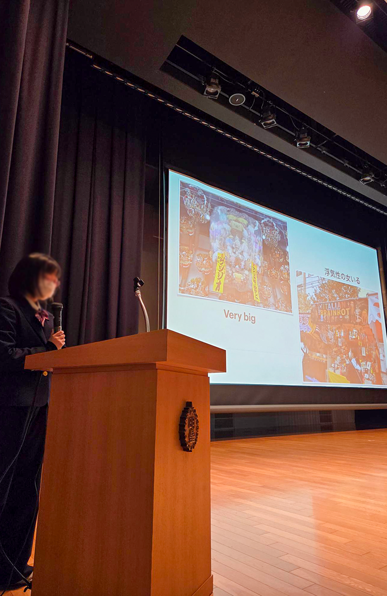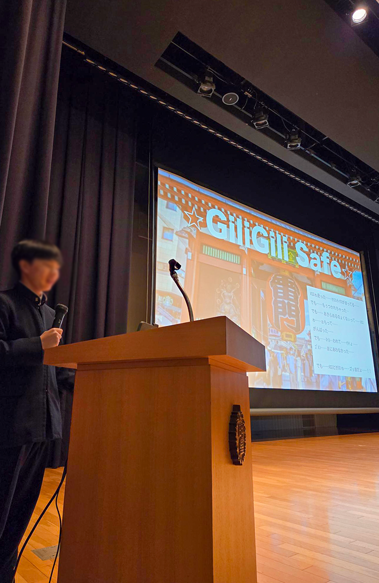 先日実施したEnglish camp浅草のスライド発表の決勝を、12月3日(水)本校講堂にて行いました。英語を使ってスライド発表をする生徒もおり、非常に盛り上がりました。英語を使って、海外の留学生と会話ができたことなどが大きな自信となったようです。 一覧に戻る