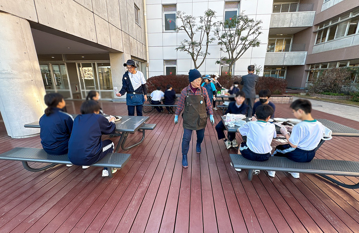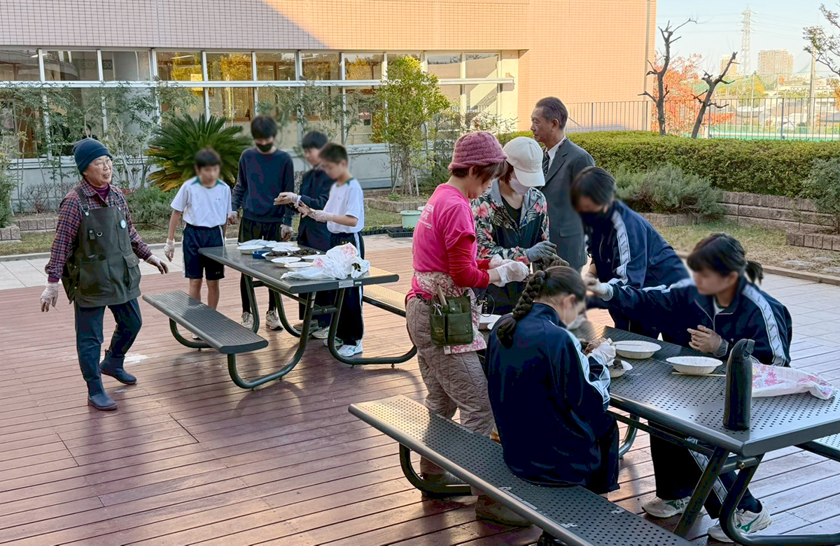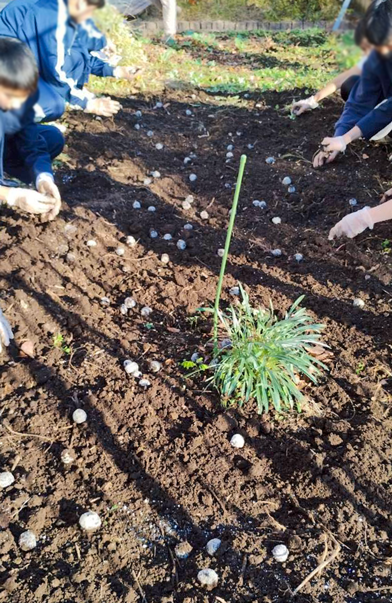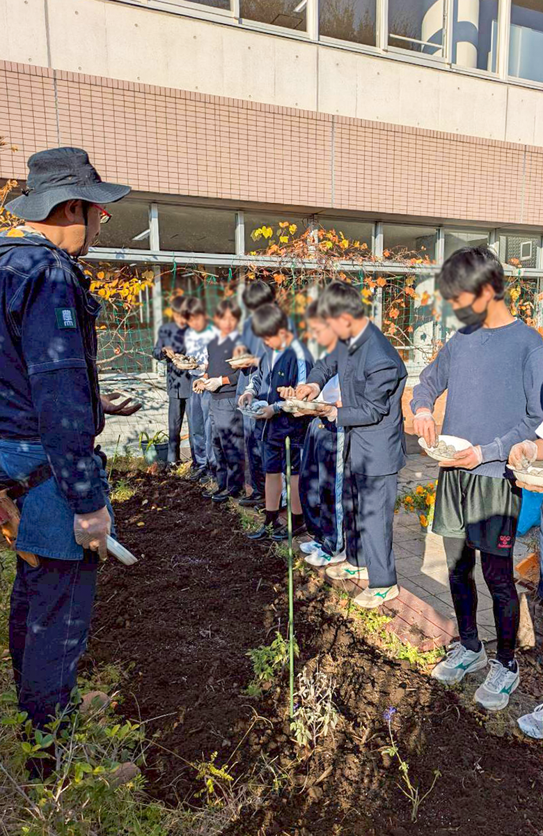 投げて埋めるという作業が新鮮だったのか、生徒たちも楽しそう。