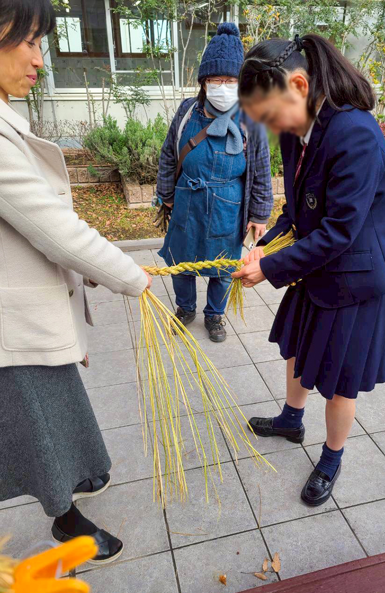 途中から先生も加わって、テラスはまるで小さな“しめ縄工房”のようでした。