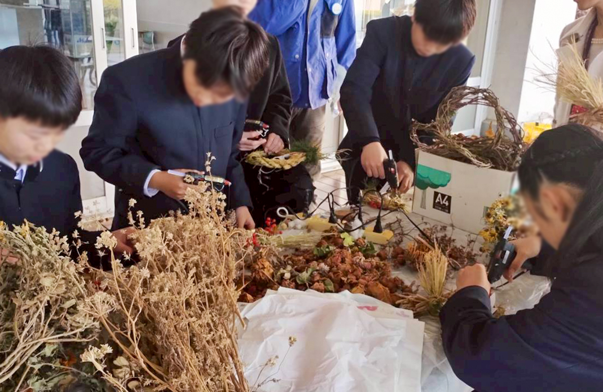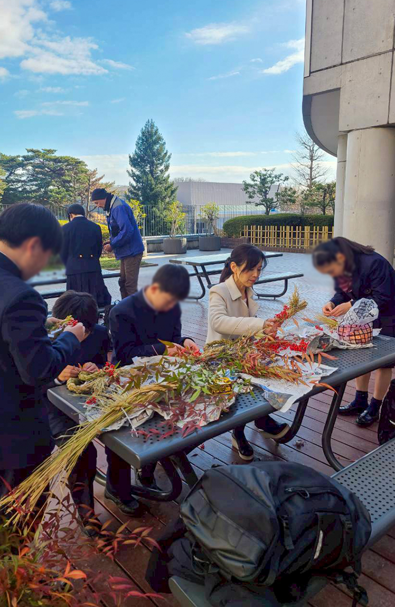 12月16日、2025年最後の「花と緑の探究プログラム」が行われました。テストも終わり終業式も間近なこの日は、午前授業で、11時過ぎに約10名の生徒が集合。