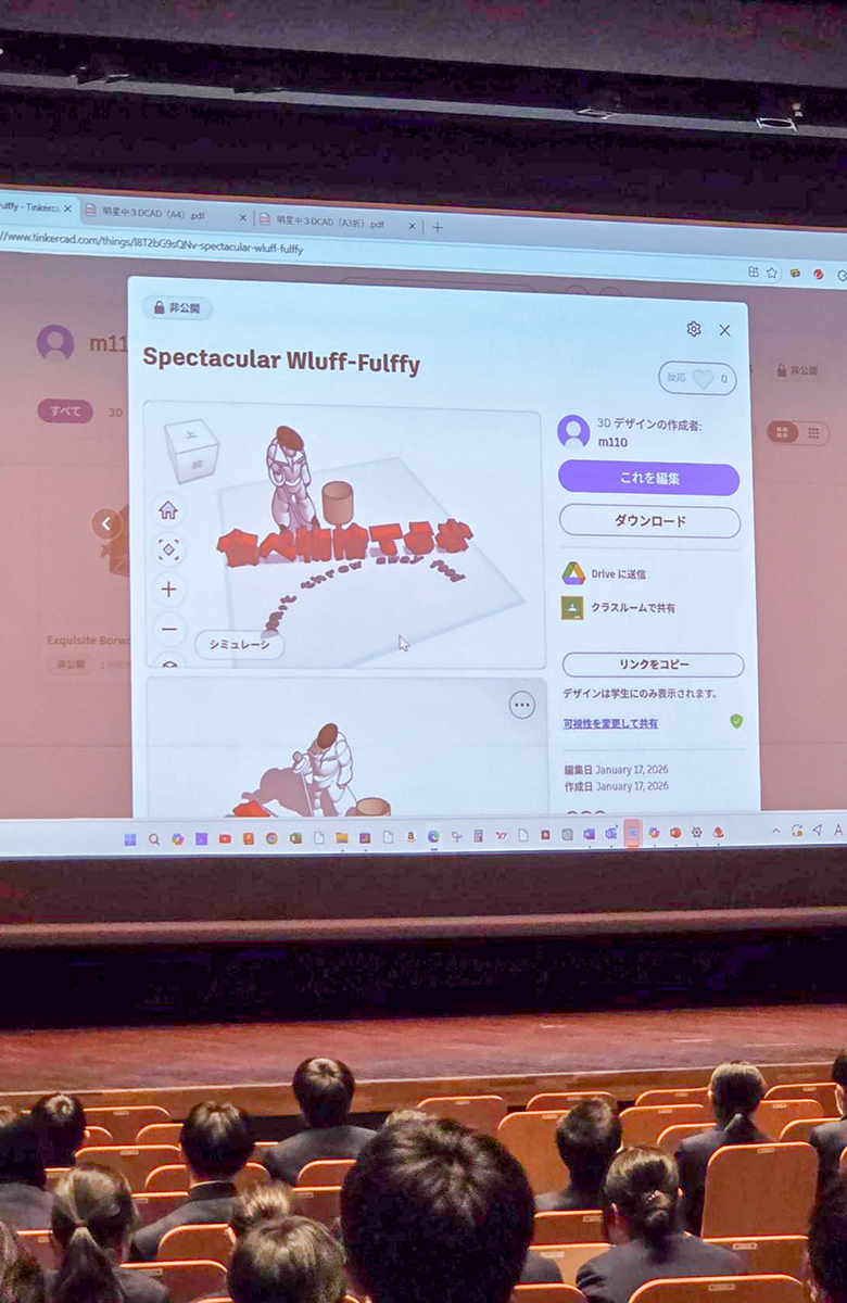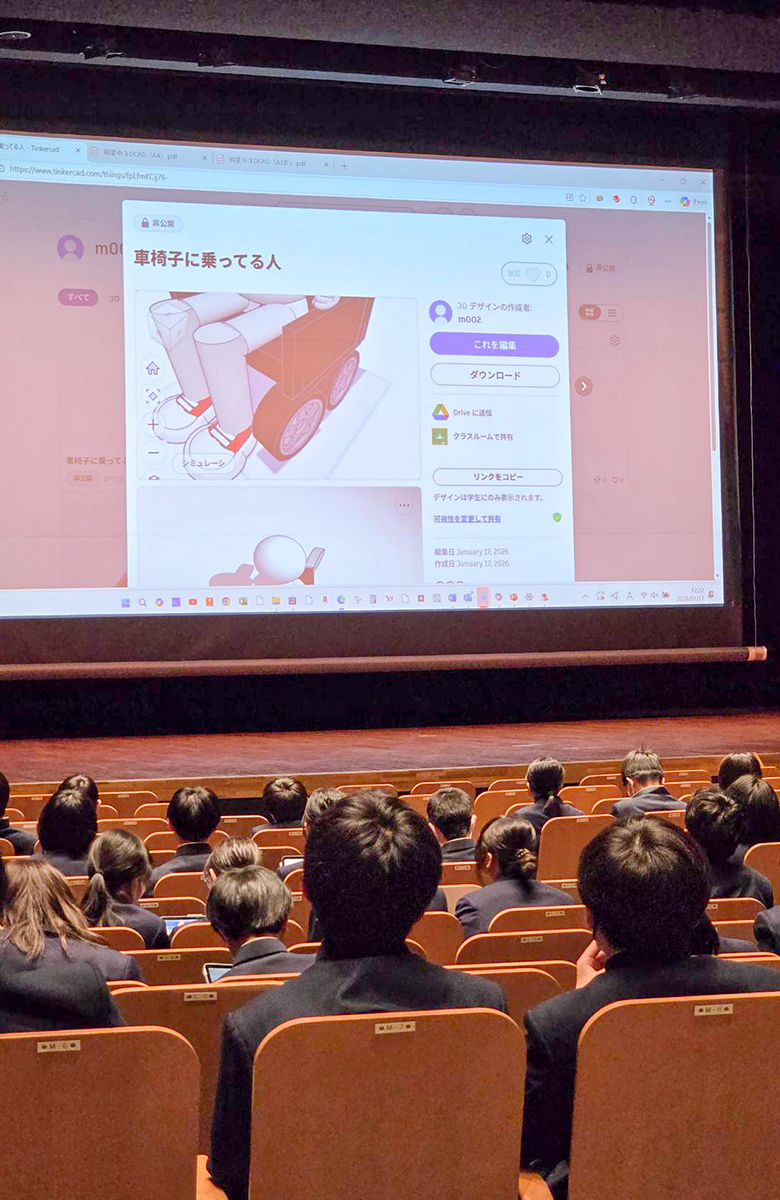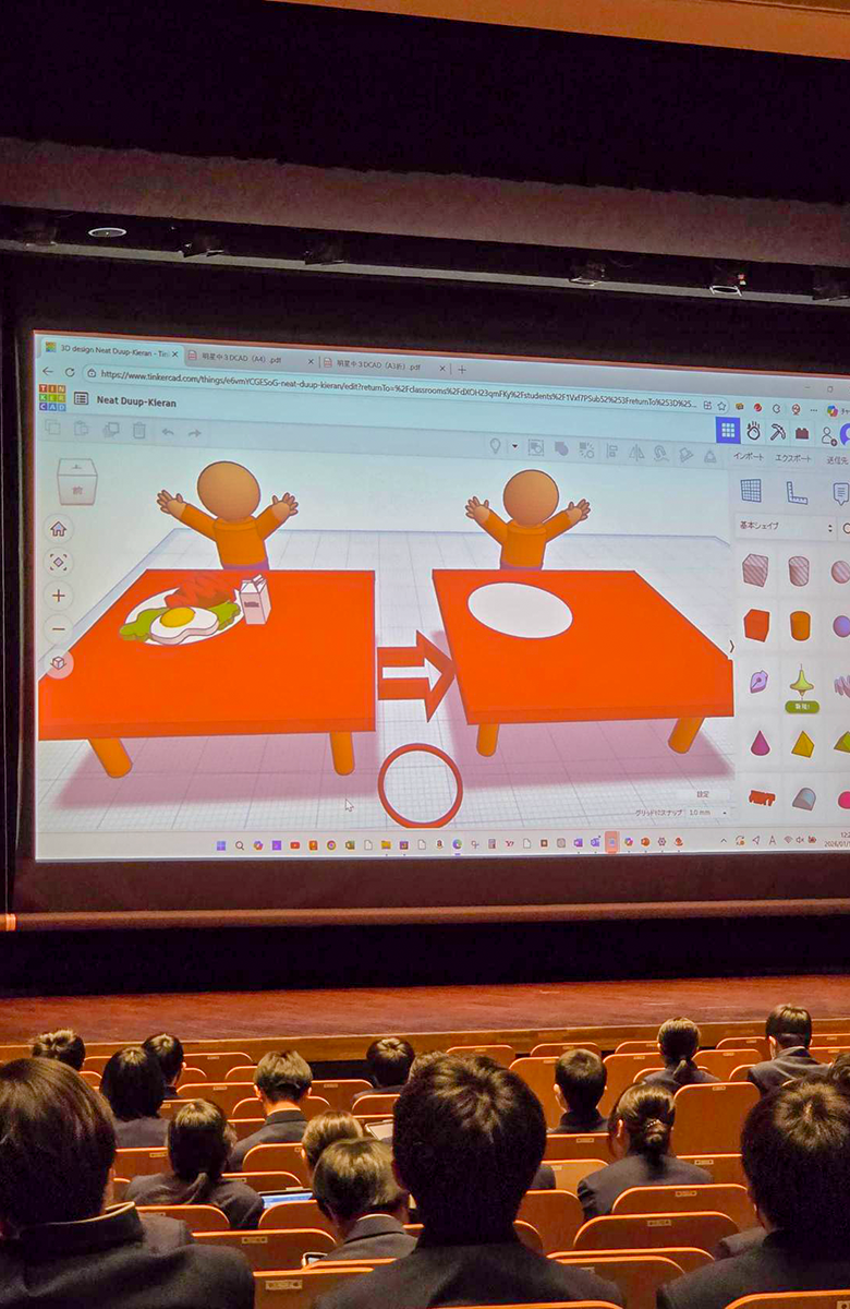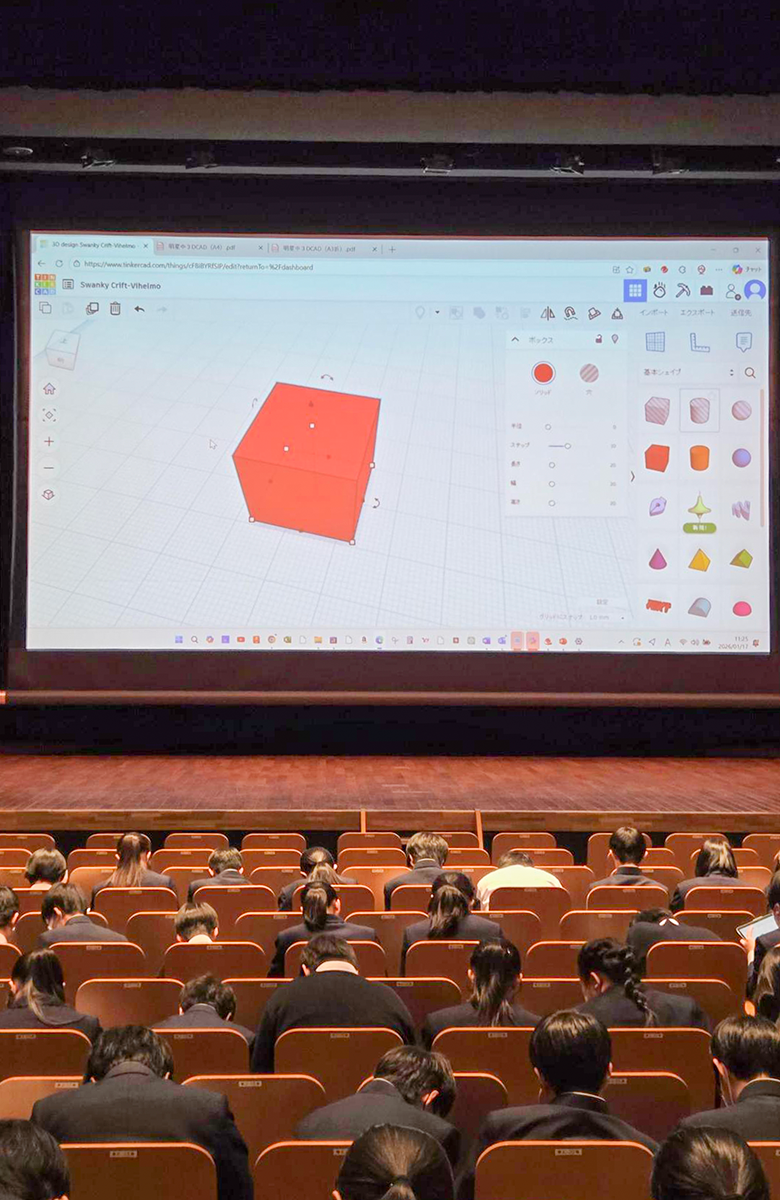 1月17日(土)、ミライクリエ協力のもと、本校の講堂にて「3DCADで自分の想いをカタチにしよう!」を実施いたしました。アプリのTinkercadをタブレットにインストールし、超高齢社会に直面する現代社会に対応すべく、様々なアイディアをカタチにしました。 一覧に戻る