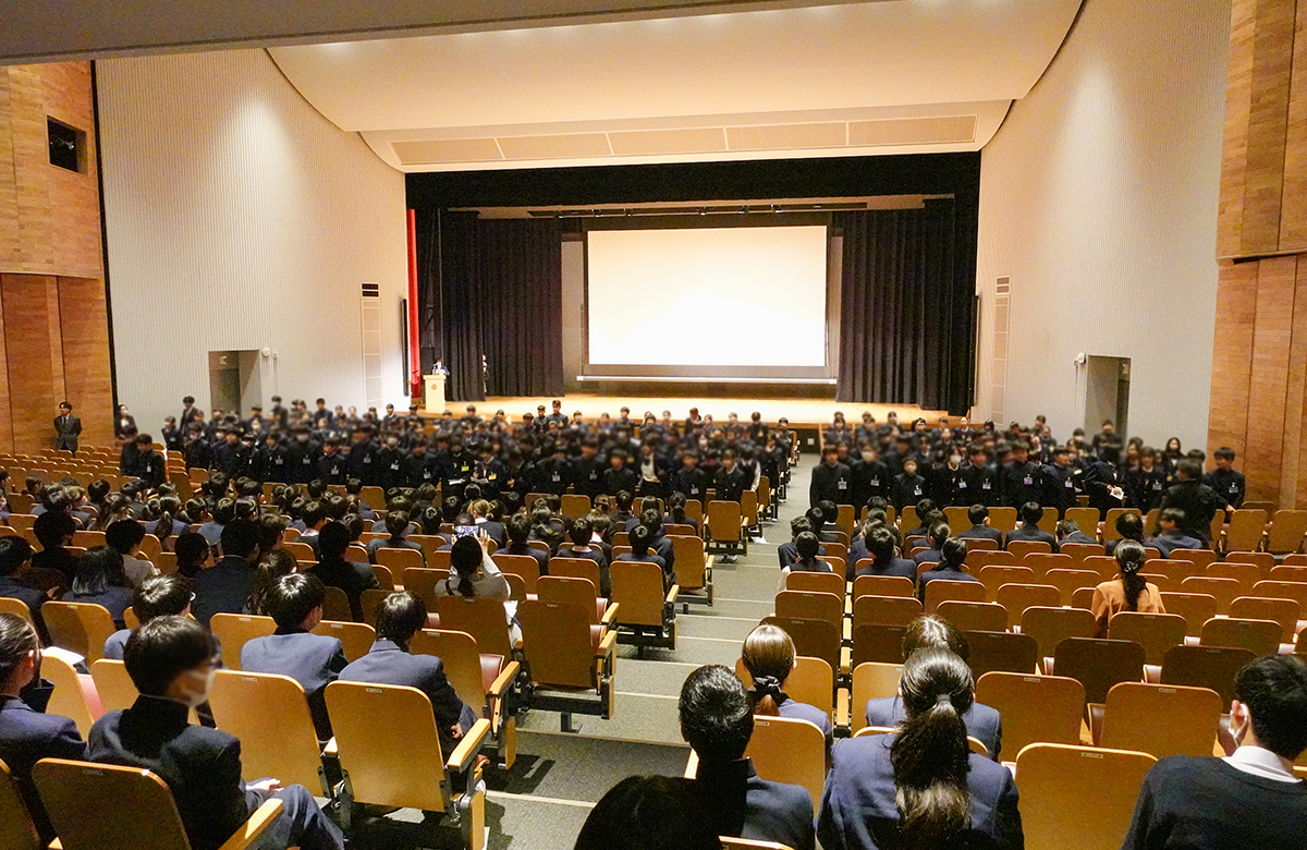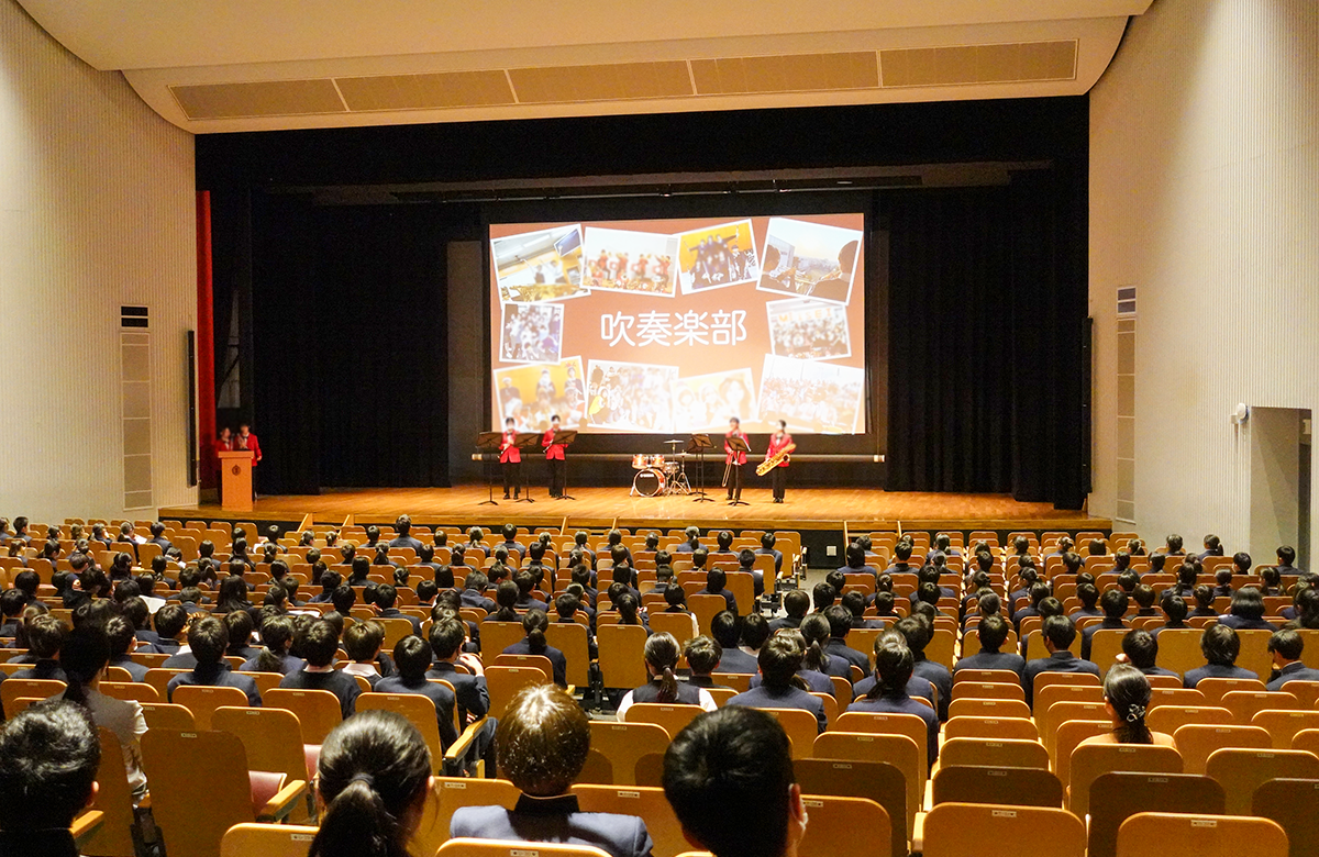 4月14日(火)の5、6限に児玉九十記念講堂にて新入生歓迎会が行われました。 生徒会による歓迎の挨拶に始まり、趣向を凝らした動画やパフォーマンスが次々と披露された部活動紹介。新入生たちは身を乗り出して楽しみ、会場は熱気に包まれました。 最初は緊張していた一年生も、プログラムが進むにつれてリラックスした表情に。 最後にはあちこちで新しい友達と語らう、微笑ましい様子が見られました。 本校の「活気」と「温かさ」がぎゅっと凝縮された、素晴らしい歓迎会となりました。 一覧に戻る