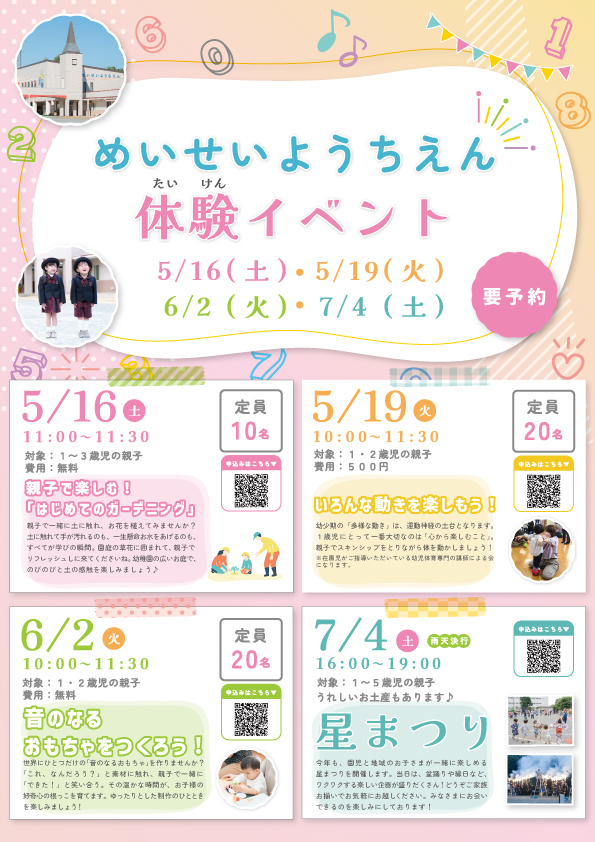 ※ 当日は、入園を検討されている保護者さま向けの入園説明会(10:00〜11:30)を実施しております。